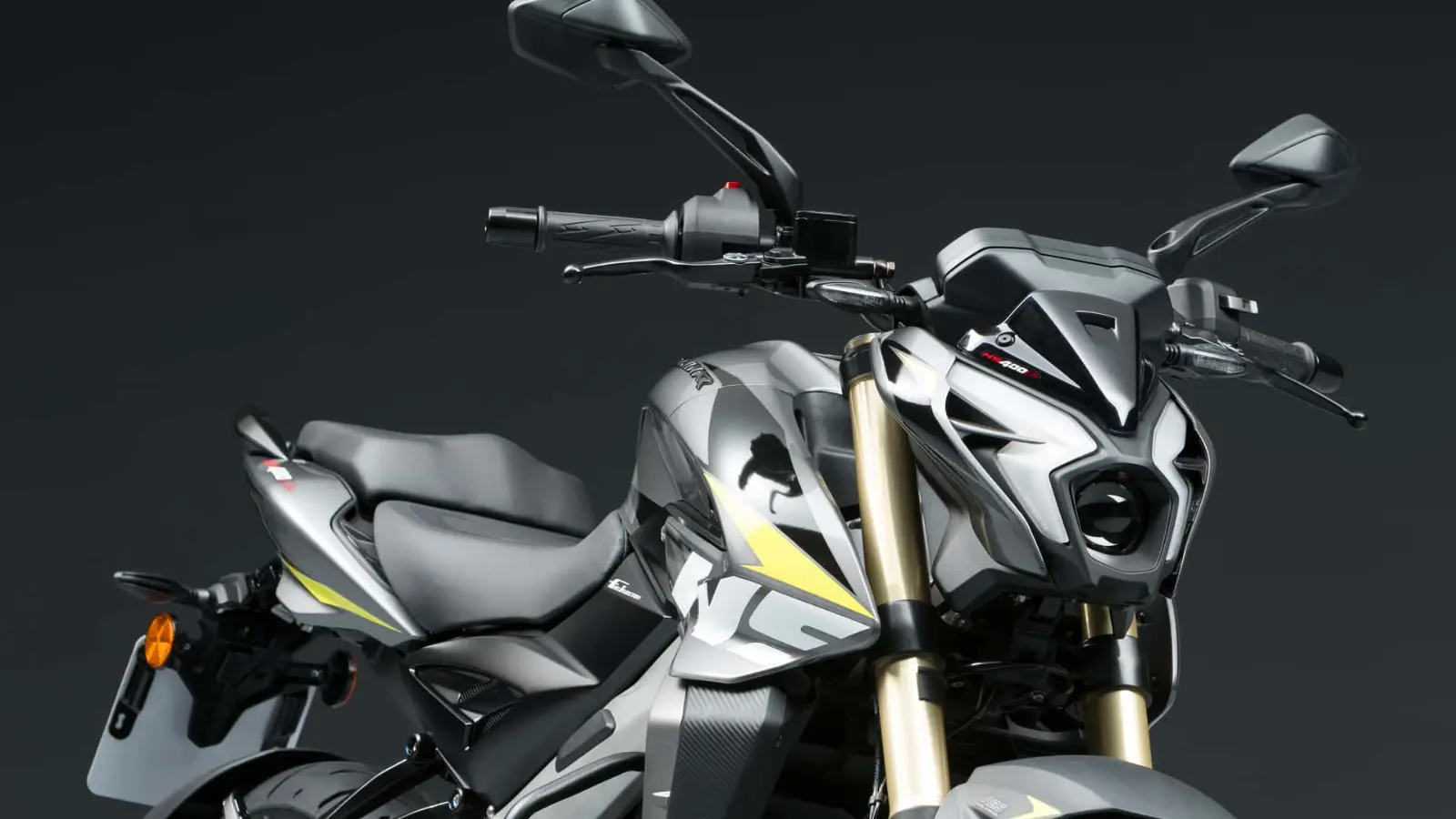 A NS400Z de 2026 tem acelerador eletrônico ride-by-wire, são quatro modos de pilotagem: Road, Rain, Sport e Off-Road, já o controle de tração trabalha com dois níveis de intervenção. O tanque tem capacidade para 12 litros.