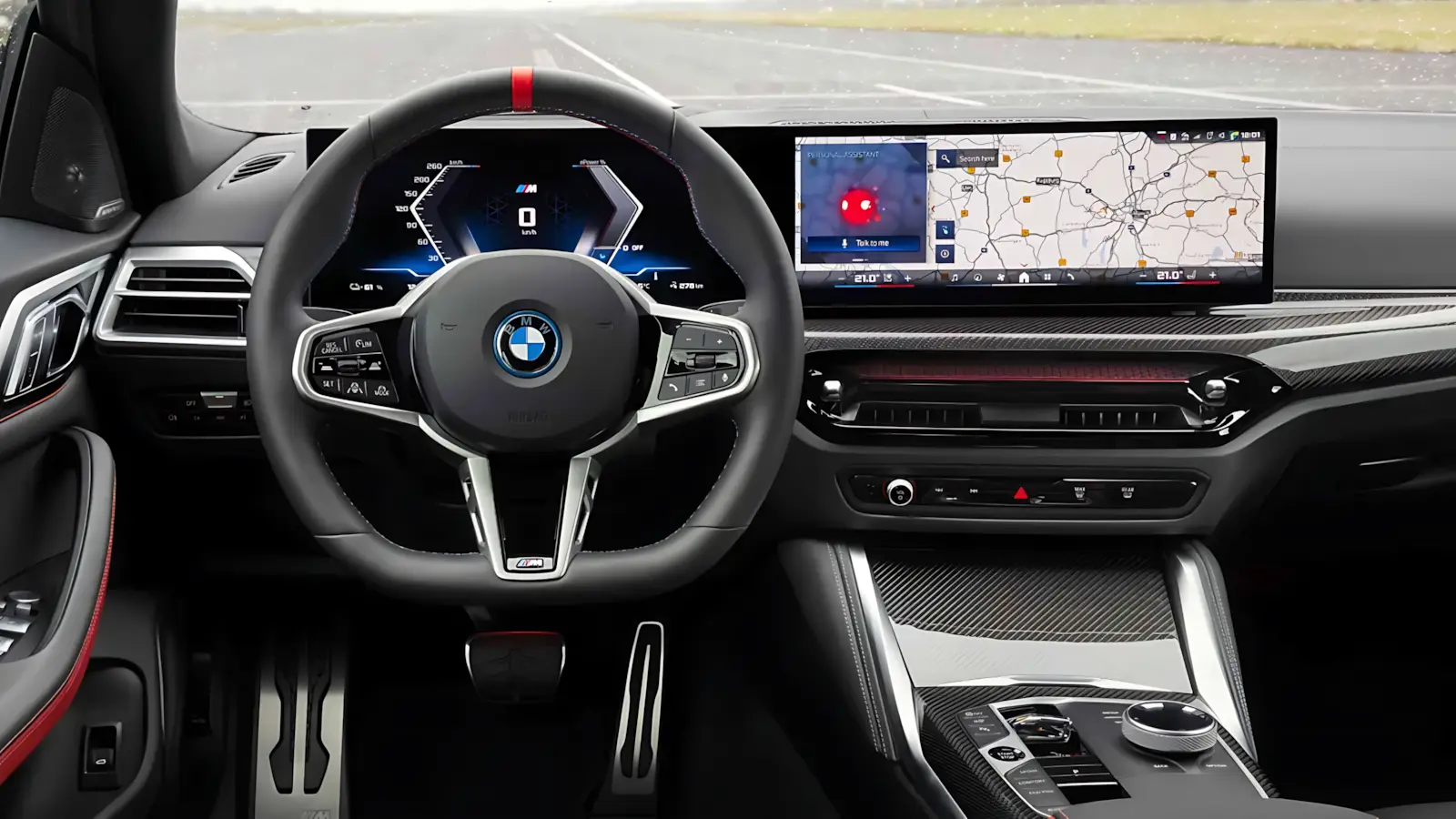 Visualmente, o novo i4 chama atenção com a grade frontal redesenhada, faróis Full LED adaptativos e traseira com novo conjunto BMW Laserlight. Dentro, a experiência é digna de um filme: acabamento premium, volante de base reta, saídas de ar-condicionado redesenhadas e muito carbono na versão M50.