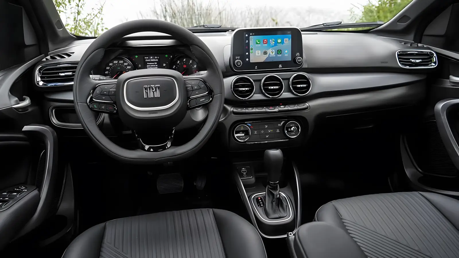 Outra evolução importante é a central multimídia atualizada de 7 polegadas, agora com espelhamento sem fio para Apple CarPlay e Android Auto nas versões intermediárias e topo de linha. Isso permite maior integração entre smartphone e sistema do carro, sem depender de cabos.