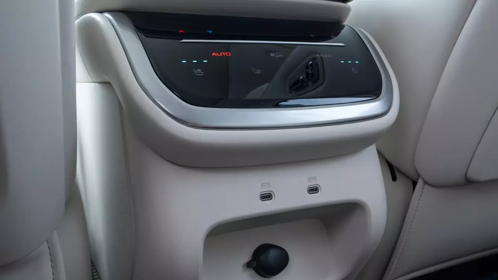 Os bancos dianteiros têm 12 ajustes elétricos, 8 modos de massagem e memória de posição. O assento do passageiro tem o recurso Gravidade Zero que reclina até 110 graus. O cinto de segurança é integrado ao banco para manter a segurança nessa posição.