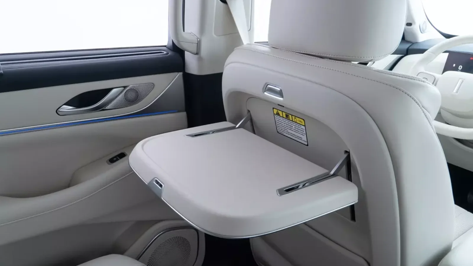 A segunda fileira tem bancos com 10 ajustes elétricos, apoios de pernas e lombar. Os assentos têm dois modos de massagem, ventilação e aquecimento independentes. Há persianas retráteis e uma mesinha retrátil atrás do banco do motorista.