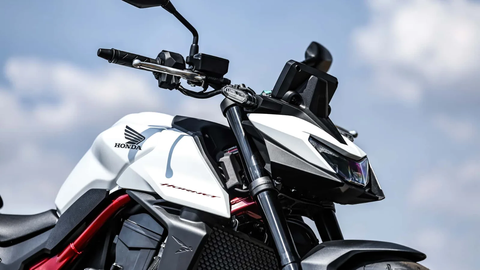 O modelo segue típico da família Honda com linhas agressivas no visual e farol Full LED angular. O tanque de 15,2 litros tem recortes laterais, a rabeta curta realça o visual naked do modelo. Além disso, a CB750 Hornet será vendida em duas cores: Branco Perolizado e Preto Metálico.