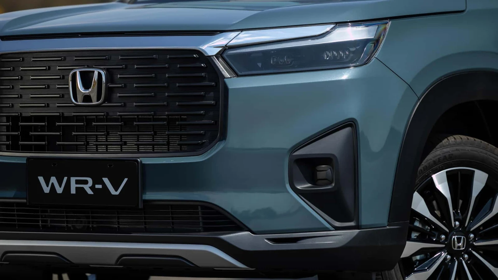 O novo WR-V adota um visual robusto, os faróis full LED são de série desde a versão EX. A grade dianteira tem elementos pontilhados tridimensionais e abertura inferior para refrigeração. O Skid Plate prateado reforça o visual aventureiro, já as molduras pretas contornam toda a carroceria.