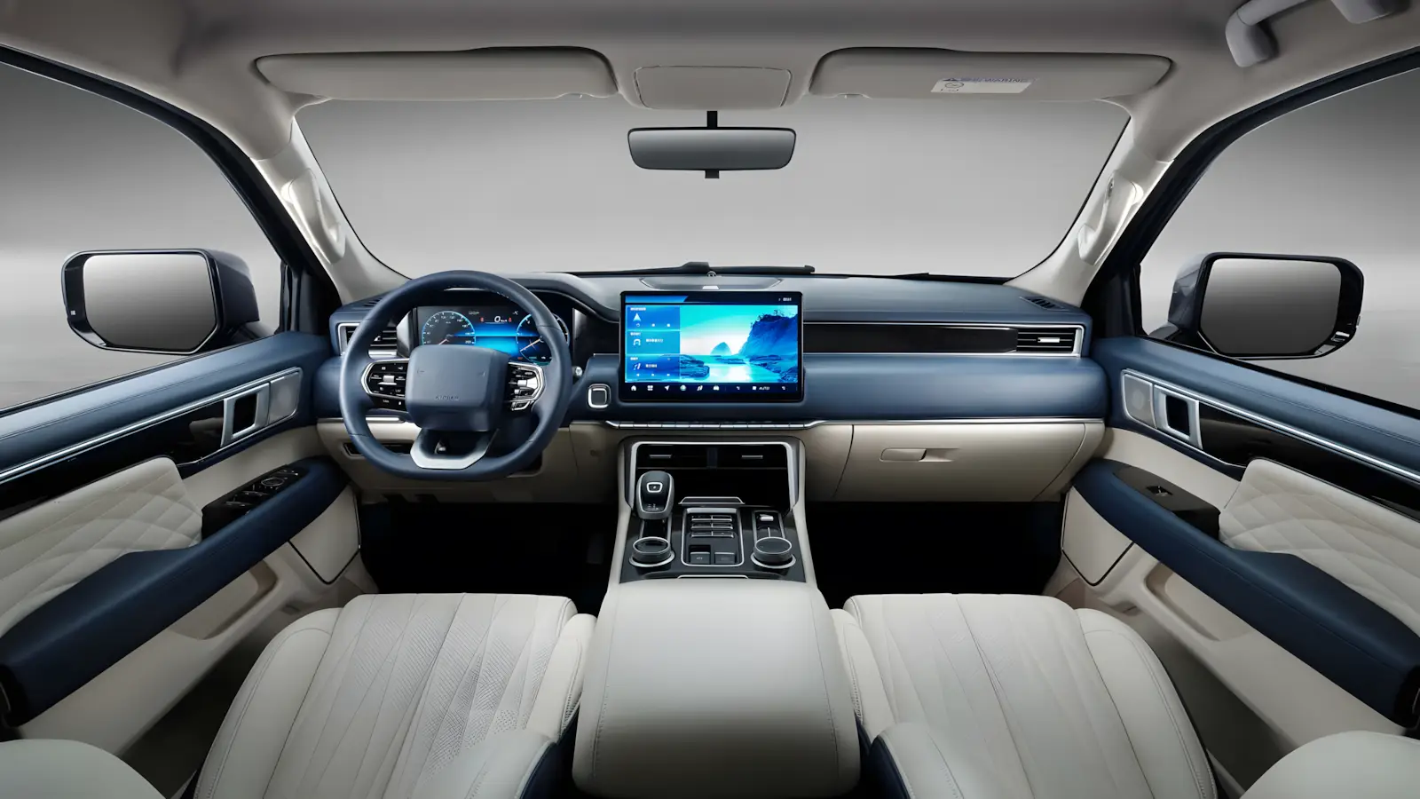 • Ar‑condicionado digital dual‑zone, bancos premium com ajuste elétrico, luz ambiente configurável em até 256 cores e volante revestido com ajustes de altura e profundidade.