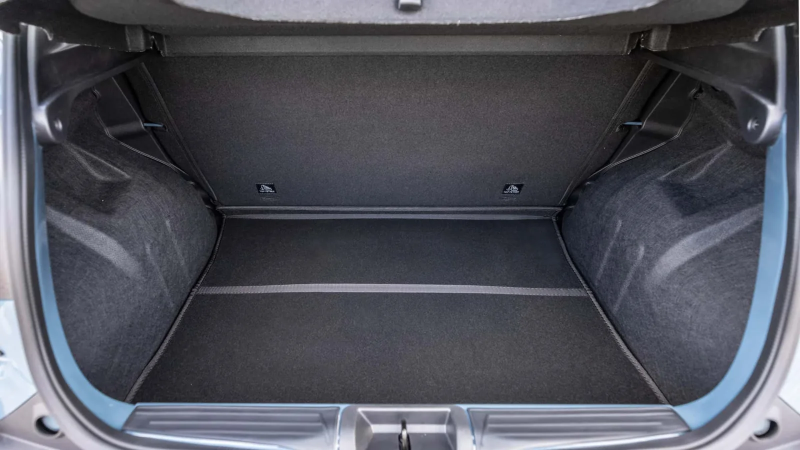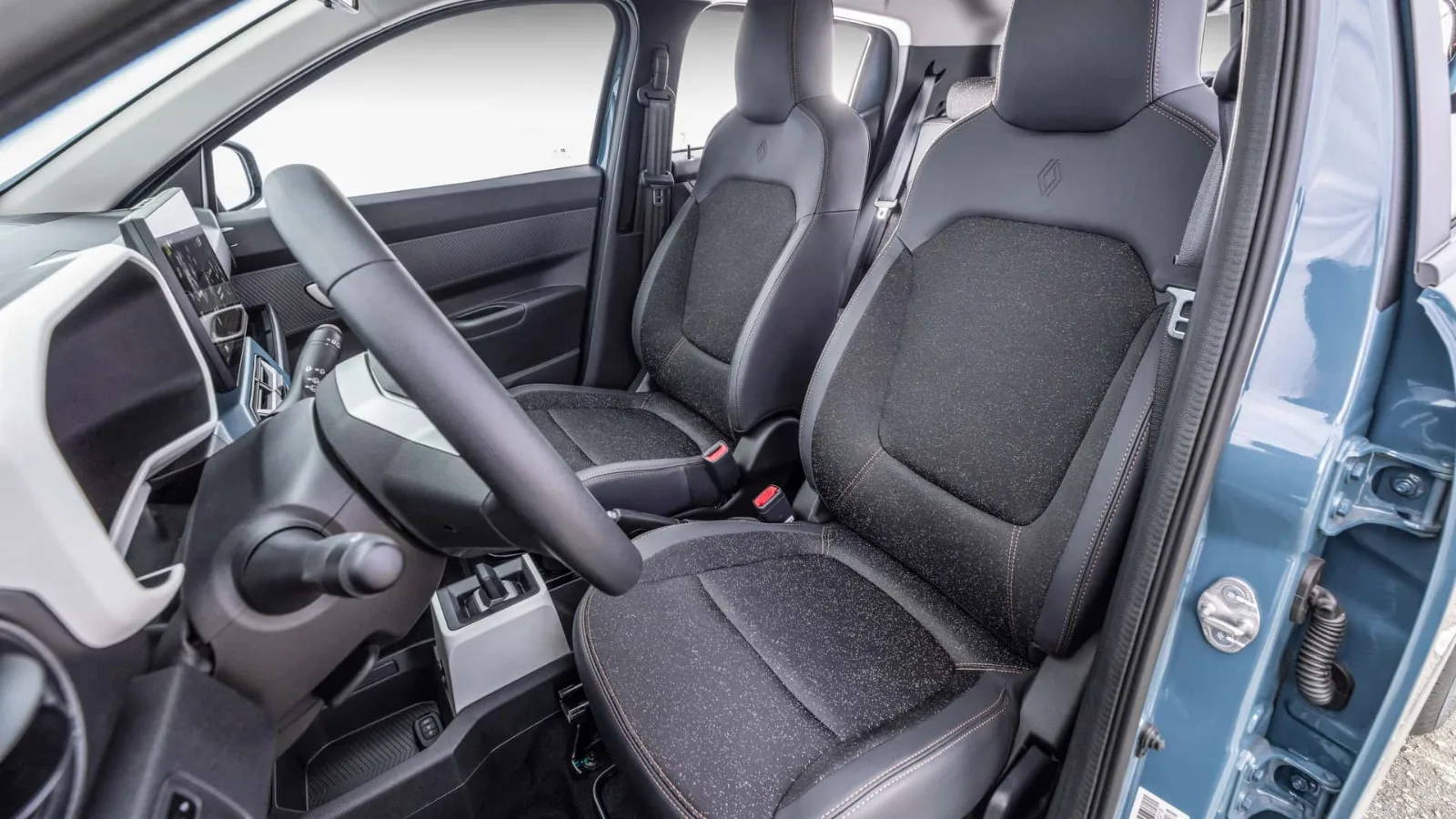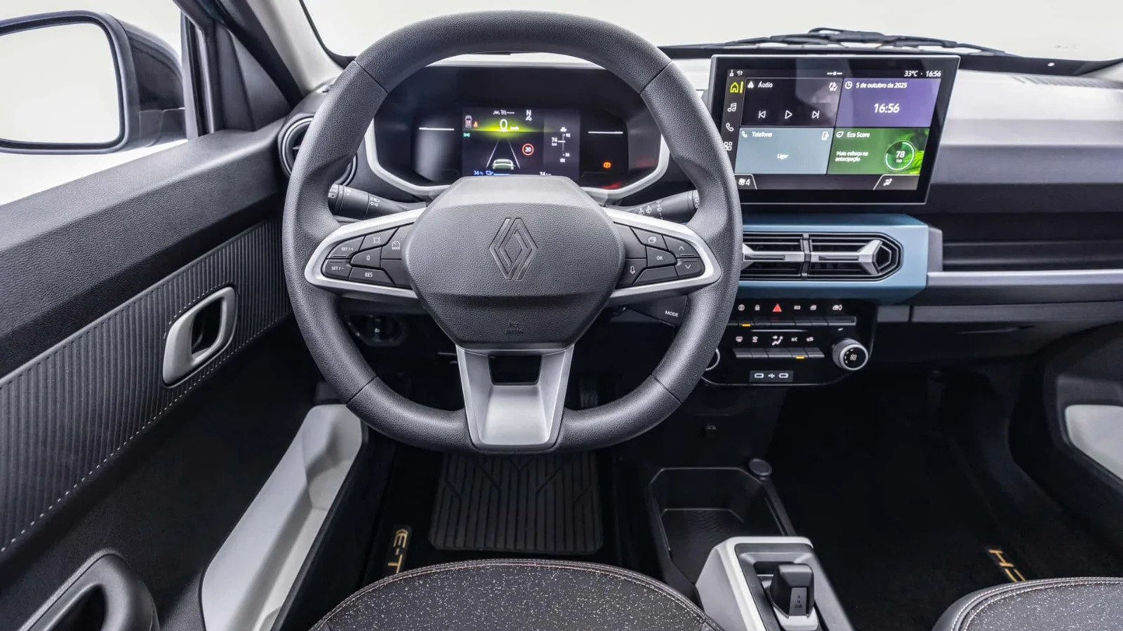 O painel de instrumentos é digital de 7 polegadas com quatro layouts. A central multimídia é flutuante de 10 polegadas, o ar-condicionado é manual. O porta-malas tem 290 litros, os compartimentos internos somam 33 litros. O carro tem quatro lugares, os apoios de cabeça traseiros ajustam em altura, o banco traseiro rebate.